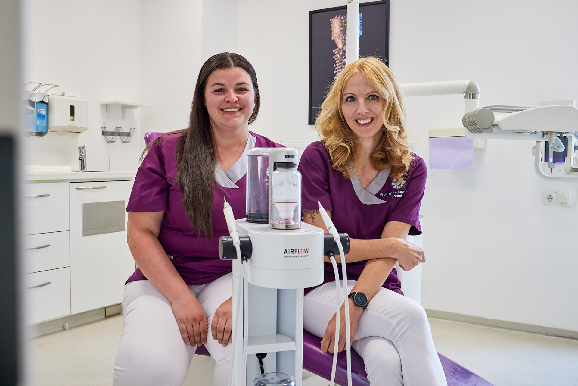 Eine professionelle Zahnreinigung beginnt in der Regel mit einer gründlichen Untersuchung Ihres Mundes durch eine Dentalhygienikerin. Anschließend wird mit speziellen Instrumenten, wie Ultraschallreinigern und Handwerkzeugen, Plaque und Zahnstein sanft von den Zähnen und unter dem Zahnfleischrand entfernt. Danach folgt ein Polieren der Zähne, um Oberflächenflecken zu entfernen und das Zahnfleisch gesund zu halten. In manchen Fällen kann auch eine Fluoridbehandlung angeboten werden, um den Zahnschmelz zu stärken und Karies vorzubeugen. Während des gesamten Prozesses werden die Patienten über die Schritte informiert und erhalten Tipps zur Verbesserung ihrer täglichen Mundhygiene. Nach der Reinigung fühlen sich die Zähne glatter an und das gesamte Mundgefühl ist frischer und sauberer.